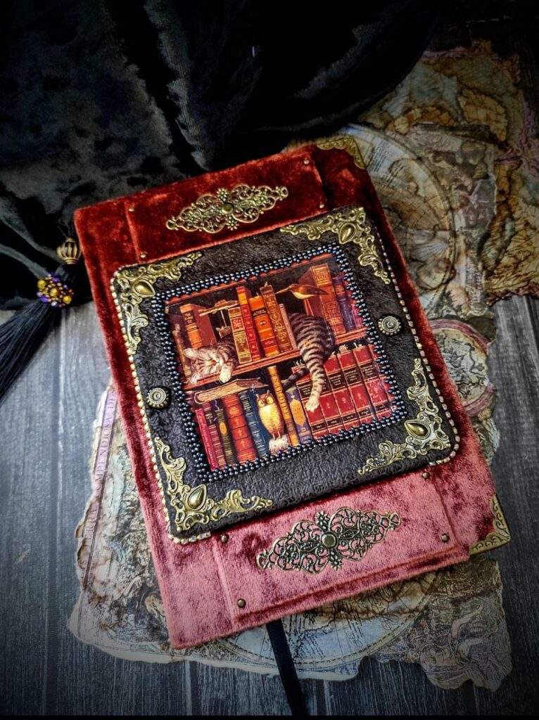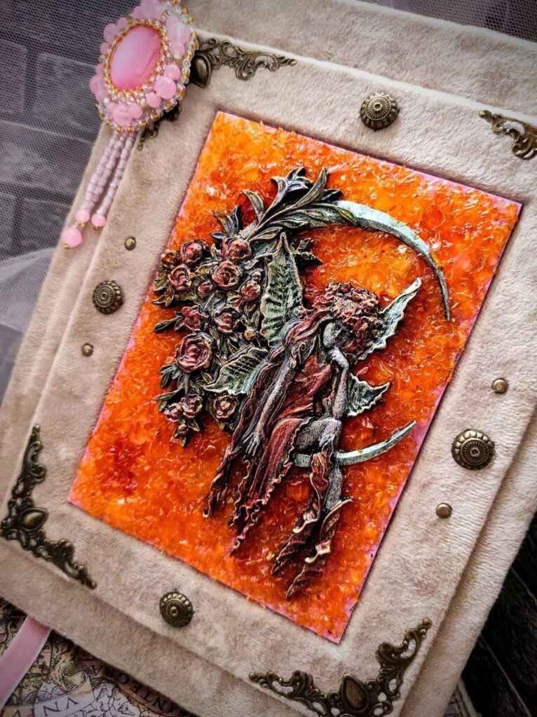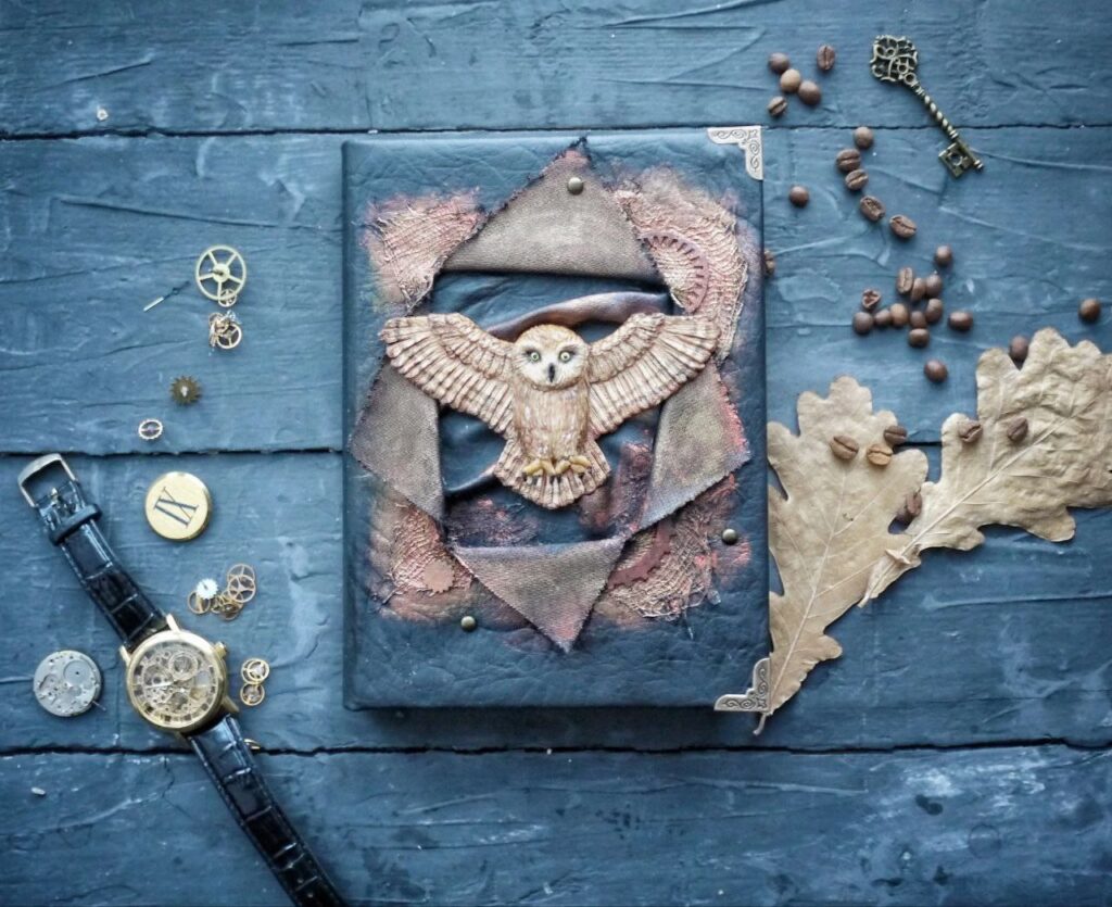 «Аби працювати з блокнотами, треба багато чого уміти. Я поєдную різні техніки. Декор нерідко виготовляю з холодного фарфору, або ж оздоблюю вишивкою бісером. Можна в роботі використовувати різні підручні матеріали: стрази, кристали, бісер. Мої блокноти нагадують середньовічні, бо та епоха для мене є найбільш романтичною. У сучасному стилі працюю, але рідше. Сама середина книжечки може бути магазинною, або склеєними власноруч кремовими аркушами. Основа обкладинки переважно у мене шкіряна, але може бути і тканинною. Шкіра – або натуральна, або замінник. Матерія – зазвичай оксамит. Палітурка у блокноті – головне. Тому її причепурюванню надаю особливої уваги навіть якщо вибір всередині має інші «фішки», – зазначає вона.