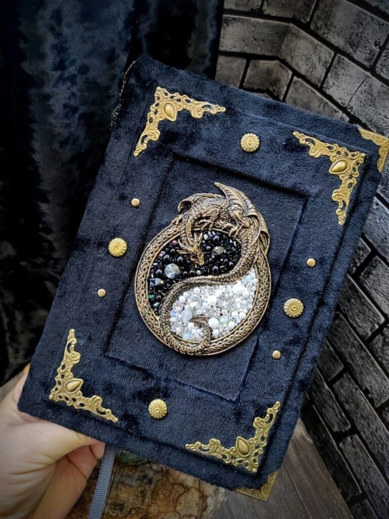 «У моєму доробку близько 300 виробів. Кожна річ має свою історію. Найбільше мені досі подобається блокнот, який робила для племінниці. Вона захоплюється драконами – і статуетки колекціонує, і підбирає одяг із зображенням цих фантастичних істот, і навіть штори у кімнатні в неї з дракончиками. Тож якось вона сказала, що хоче, аби я їй на день народження подарувала блокнот. Який на ньому має бути декор – навіть питання не стояло. Тож я почала в мережі шукати милих драконів, аби надихнутися, вловити «хвилю». Відтак зробила основу у вигляді «інь» і «янь» у формі дракона з полімерної глини, оздобила її камінцями та стразами. Вийшло таке цікаве поєднання білого і чорного – як двох протилежностей. Саму картонну палітурку обшила шкірою і зробила до записника ще ручку у вигляді пера. Подарунок іменинниці дуже сподобався. Хоч працювала над блокнотом майже місяць, але результат того вартував», – наголошує майстриня.