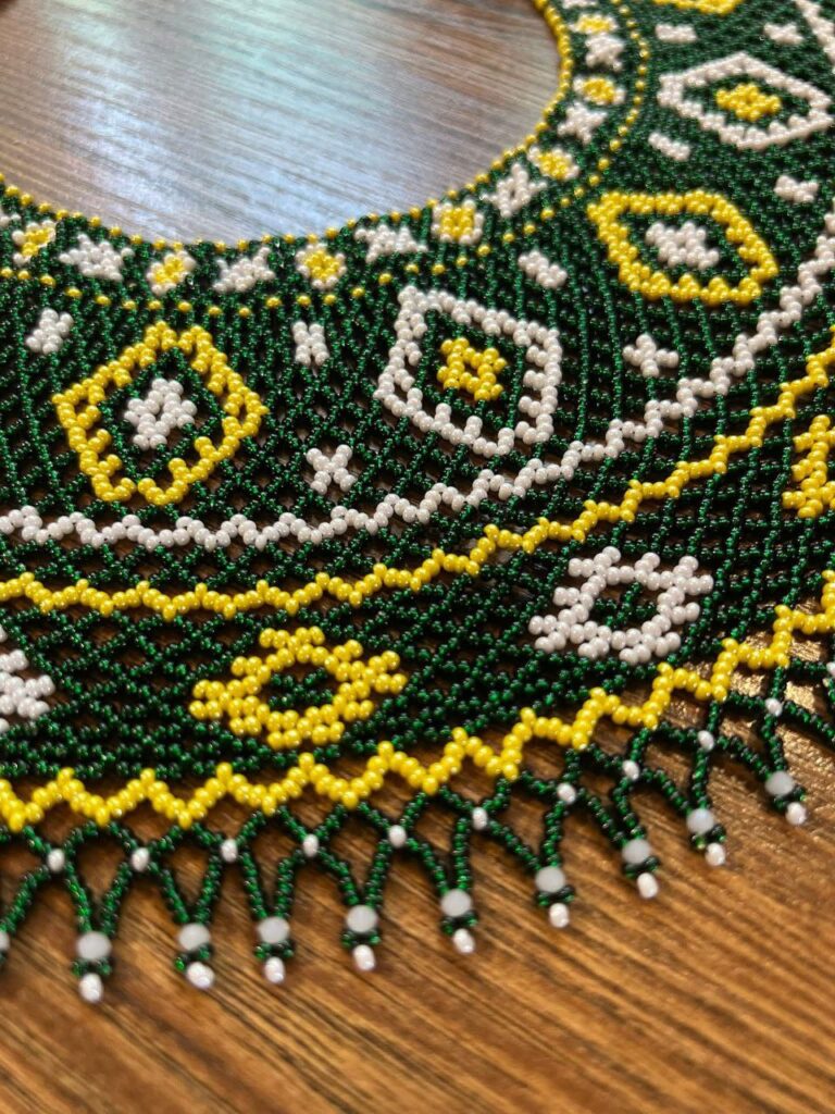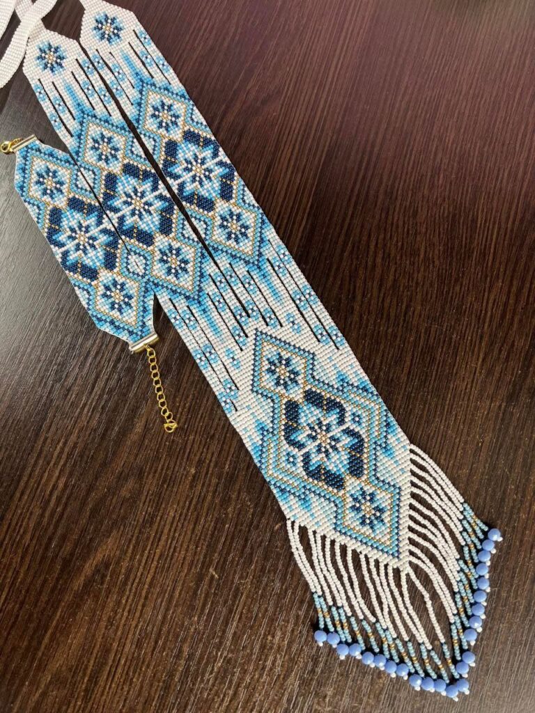 «Якийсь один вид творчості як кращий для себе виділити не можу. Наприклад, є таке, що тиждень займаюся тільки бісероплетіннням, потім тільки в’язанням гачком. Коли що надихає, те й роблю. Натхнення приходить або під час творчого процесу, або надихають учні, чи якісь картинки у соцмережах. Рукоділля для мене – і хобі, і спосіб самореалізації, і в той же час у цьому напрямку займаюся з вихованцями. Загалом робіт у мене більше тисячі. Це – приблизно з 2020 року. В’яжу гачком, вишиваю бісером, виготовляю з нього квіти та прикраси, виготовляю усілякий декор із фоамірану, природних матеріалів (наприклад, великодній, різдвяний). Також полюбляю декупаж, вироби з фетру, працюю з атласними, велюровими стрічками. Здається, мало які матеріали не використовую. Собі, скажімо, вишивала і сорочки бісером, і сукні, і рушники, і картини, і багато іншого. Вишиваю не тільки бісером, але й хрестиком та гладдю. Із бісеру, для прикладу, плету браслети, ґердани – кутові, колові, звичайні, чокери, силянки, кривульки, кризи, брелоки» – зізнається умілиця.