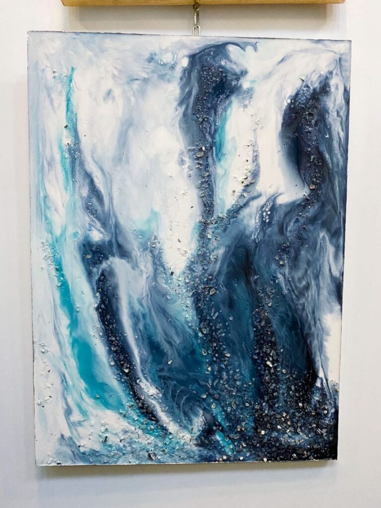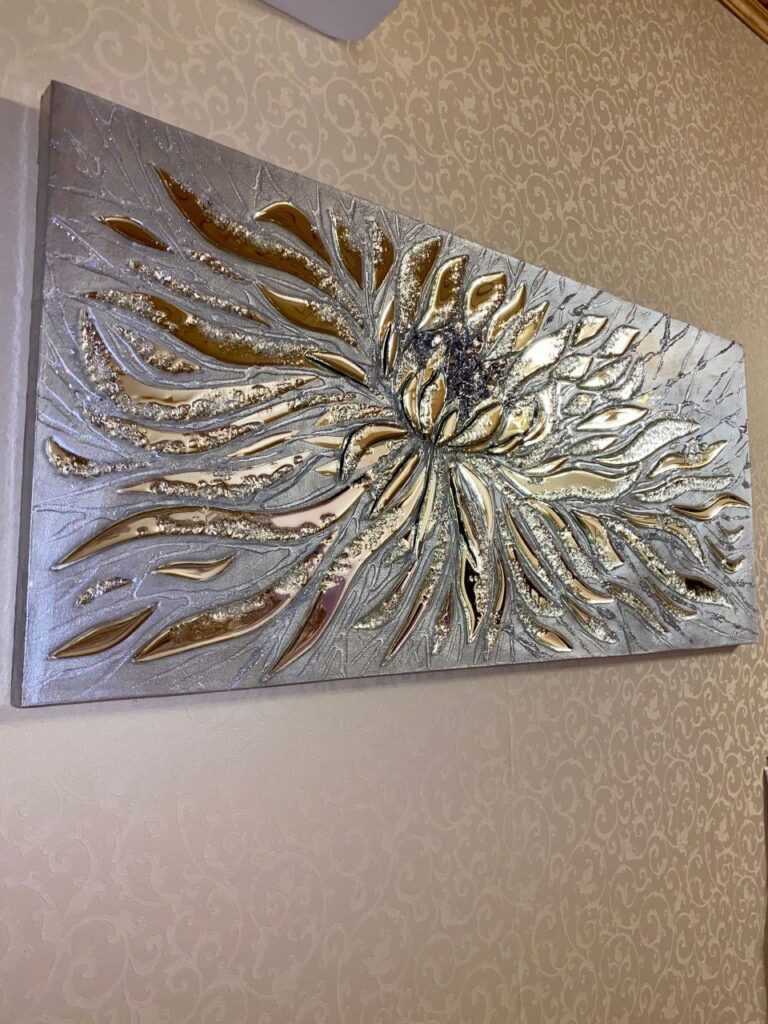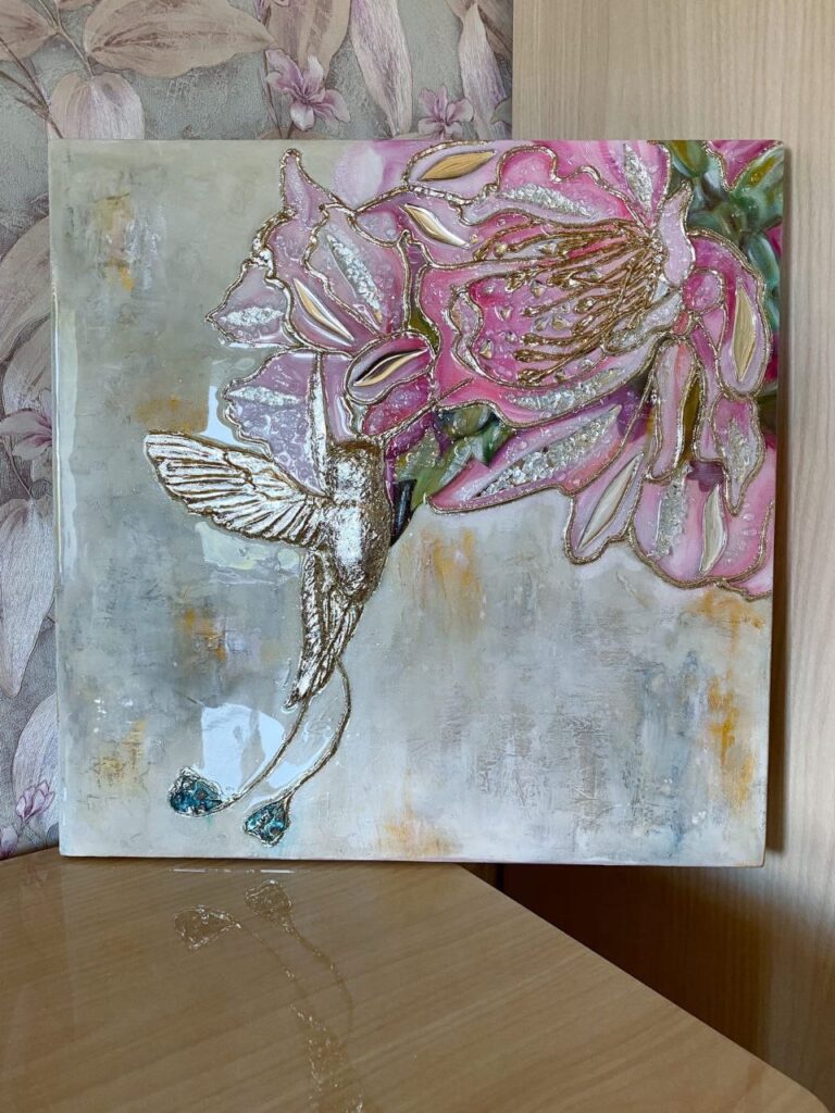 Картина, створена за допомогою епоксидних смол дуже цікава, яскрава і її поверхня нагадує глянцеву.