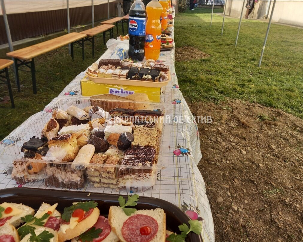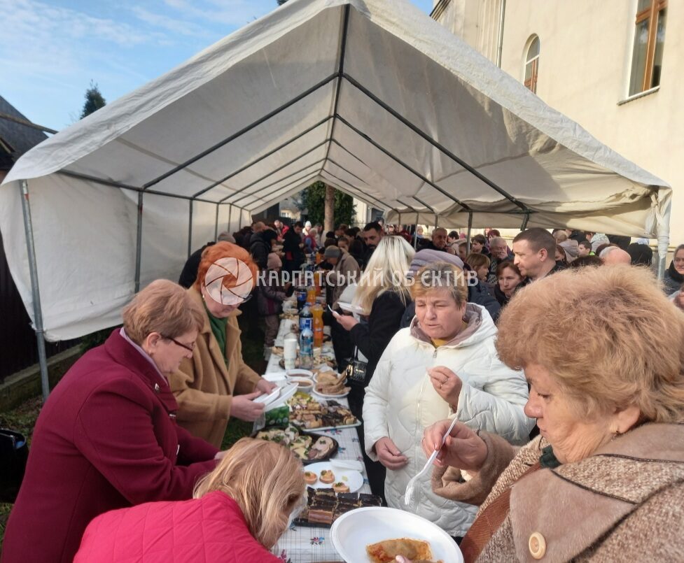 Друга частина празника проходила на території церкви. Для громади та гостей парафіяни підготували спільне частування. На щедрих столах були бутерброди з ікрою, червоною рибою, ковбасою, шинкою, сиром. Пригощали також традиційними голубцями – стравою, без якої не обходиться жодна закарпатська гостина, а також смачним бограчем, який приготували чоловіки у великому казані. На десерт подали домашні тістечка, печиво, каву, чай.