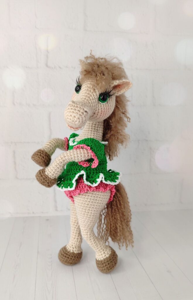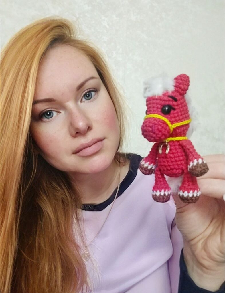 «То був мій перший Санта. Робила його на замовлення для племінниці у минулому році. Їй тоді було 6 років і вона ще вірила у дива. Він мав бути досить великим – 70 сантиметрів у висоту, тобто мав стояти під ялинкою. Проте готова схема в мене була на маленьку іграшку. Тож я її декілька разів довелося переробляти, бо завжди щось не виходило. Але врешті-решт впоралась і Санта у Аліни стояв не під ялинкою, вона спала з іграшкою майже до лютого. У цьому році подарую дівчинці такого ж немаленького коника і спати з ним вона зможе постійно, хоч рік, хоч декілька років», – зізналася Ірма.