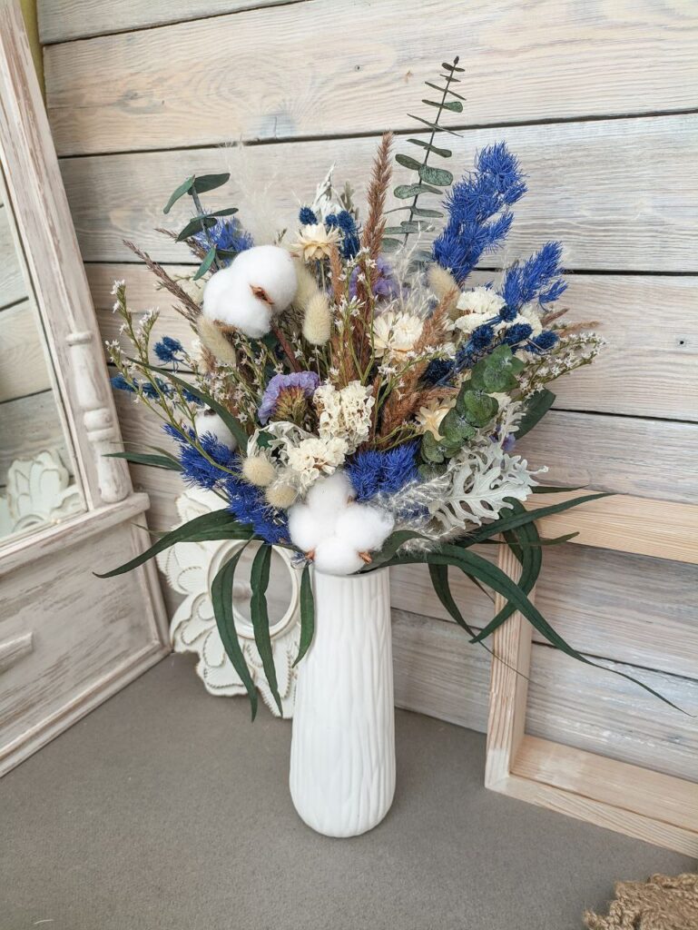 Для своїх виробів не всі рослини майстриня висушує, деякі додає просто зарізаними і вони самі вже в букеті не в’януть, а сохнуть і при цьому не втрачають привабливості.