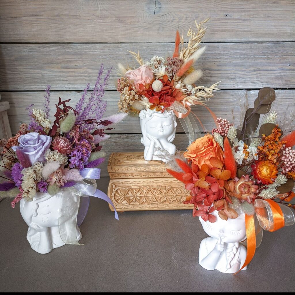 Осінь – пора, коли рослини в’януть і природа готується до зимової сплячки. Але дехто вміє знаходити в цій порі свої принади і квітам продовжує життя в унікальних композиціях, які потім ще протягом тривалого часу можуть радувати погляд і дарувати приємні згадки про літо й тепло. Наші талановиті майстрині талановиті у всьому.