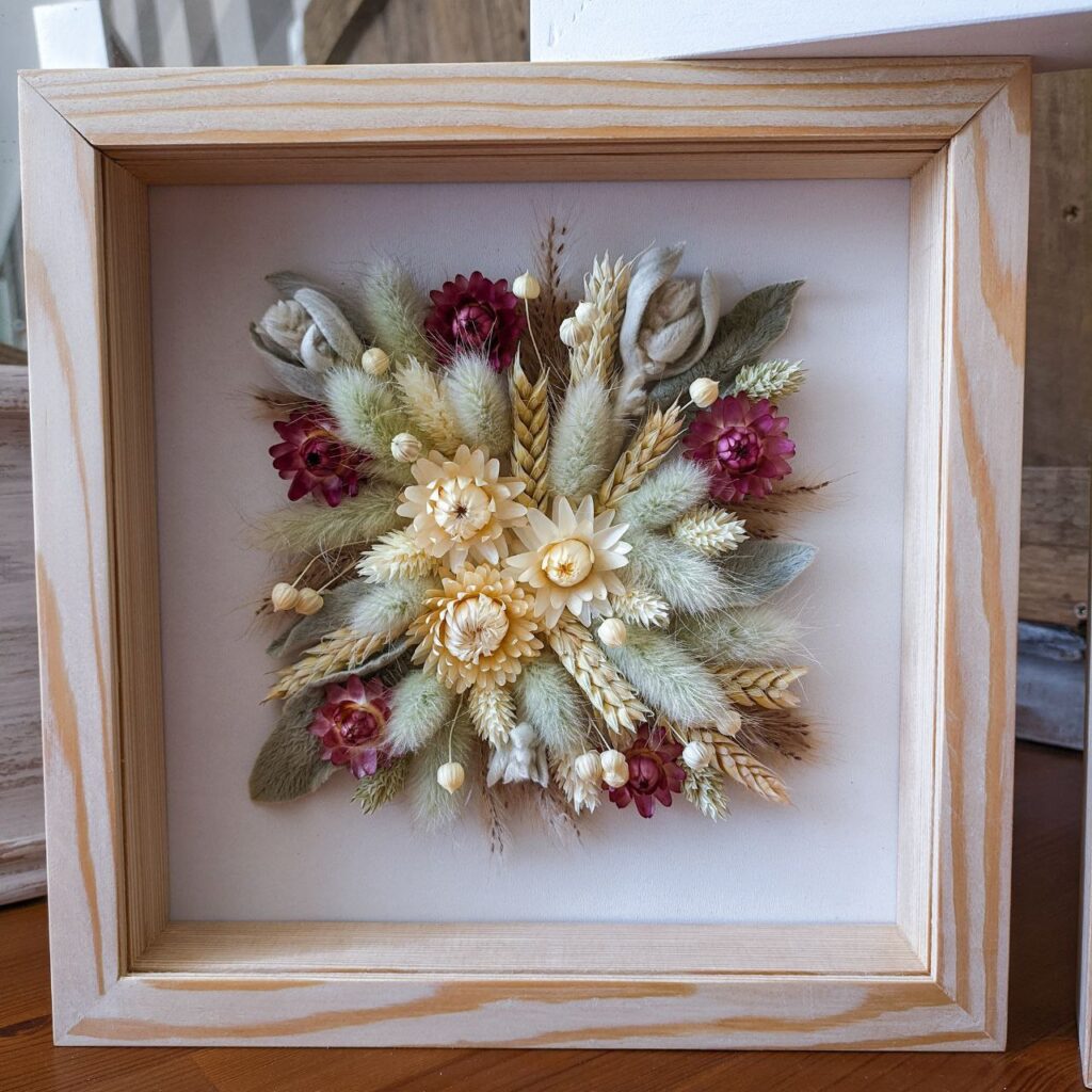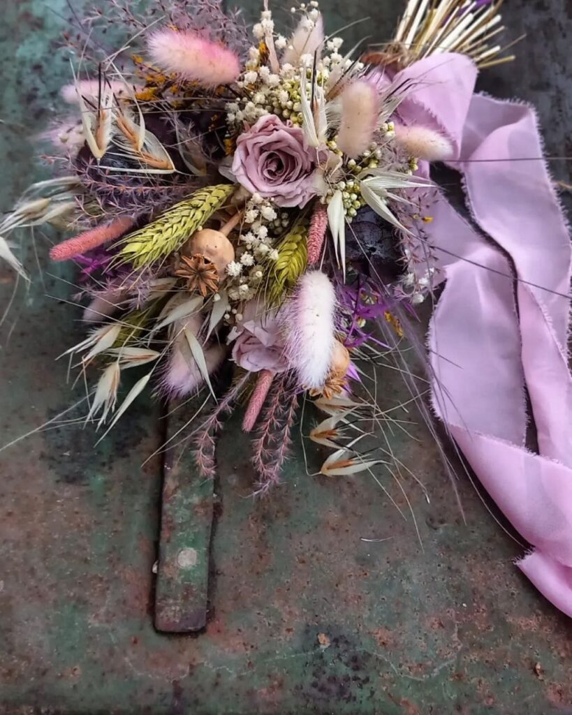 «Квіти можна висушити практично всі. Трави так само, але найбільш ідеально підходять чебрець та м’ята, які ще й довго зберігають приємний запах. Зривати рослини краще в сонячну суху погоду. Сохнути вони повинні при кімнатній температурі, бажано в темному місці. Не у книзі, як для гербарію, як ми всі робили в дитинстві, а у відкритому просторі, аби бутон не втратив форму, не сплюснувся. Повітря має бути сухим. Можна використовувати спеціальні поглиначі вологи. Є ще й прискорений метод сушіння, але тоді треба купити дегідратор. У мене його немає. А якщо спосіб природній, бажано підв’язати пучки бутонами донизу. Висихають рослини впродовж приблизно 2-4 тижнів. Серед квітів дуже люблю в букетах лаванду, хризантеми та троянди. Сушити їх легко, а композиції з ними багаті на вигляд», – наголошує умілиця. Так само – лищиця, або колосся пшениці.