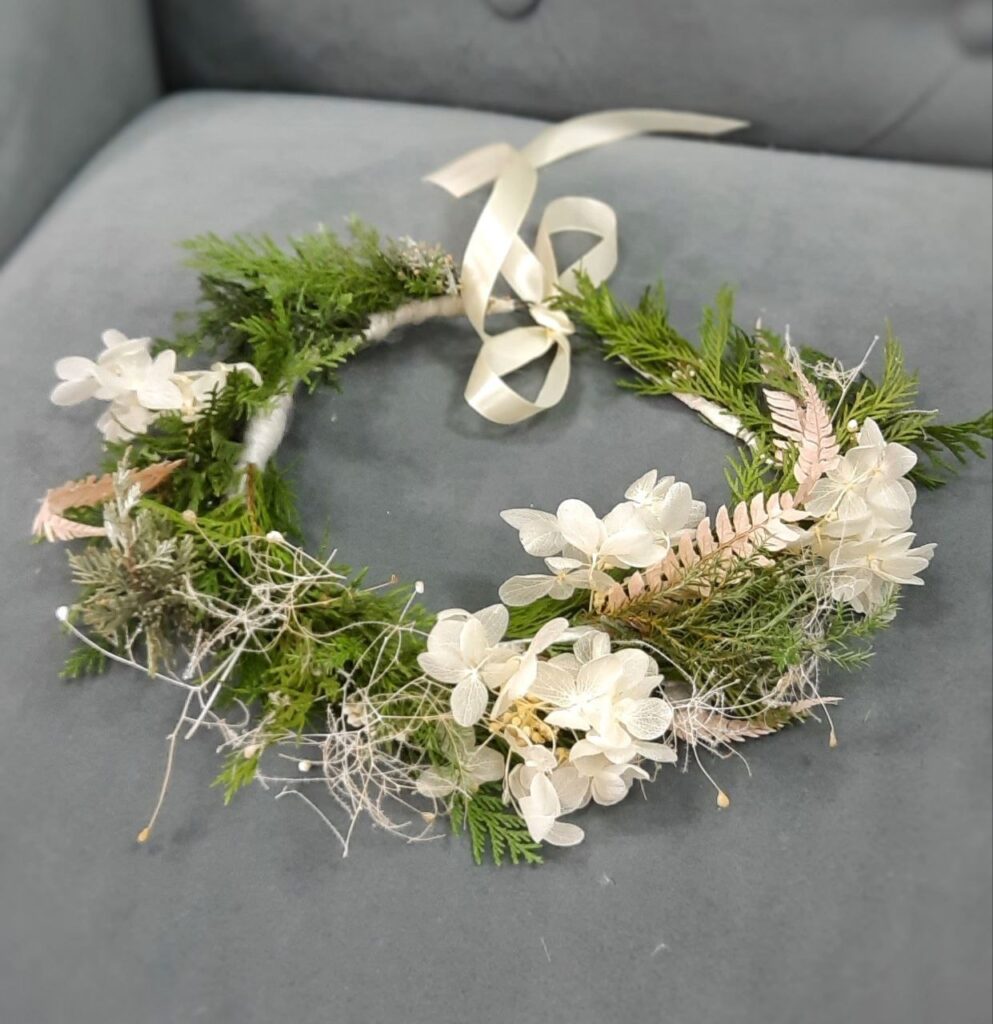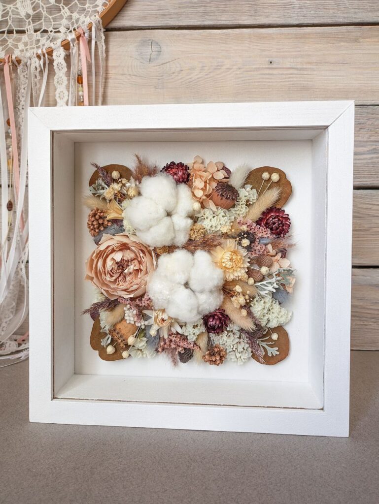 «Я завжди мріяла про приватний будинок і квітковий особистий рай. Коли побралися з Іваном, спочатку купили квартиру, а потім ділянку. Хату зводили нелегко, більше 10 років. Ми зразу домовилися, що у саду будуть у нас рости не тільки дерева, але й певну частину я відведу собі під улюблені квіткові насадження. Таким чином почала поступово висаджувати троянди, лілії, тюльпани, нарциси, гладіолуси, гортензії, волошки, ромашки, нагідки, шафрани… Потім захопилася ще й декоративними травами і поступово зібрала більше 40 видів рослин. Щось купувала на ринку, щось замовляла через інтернет, чимось обмінювалася з подругами. Але коли вся ця краса починала в’янути, щороку мені було дуже сумно. Прямо якась меланхолія охоплювала… Зиму не люблю взагалі і дуже важко переношу холод. Тож років 6 тому мені спало на думку, як собі можна продовжити осінь і почала створювати різні композиції із квітів. Це – і панно, і букети, і настільні цікавинки, і віночки. Ніде не вчилась, усю інформацію вечорами шукала в мережі. Читала, дивилася відео, робила власні висновки, експериментувала… Аж поки не освоїла все те, що зараз умію», – зізналася «Карпатському об’єктиву» хустянка.