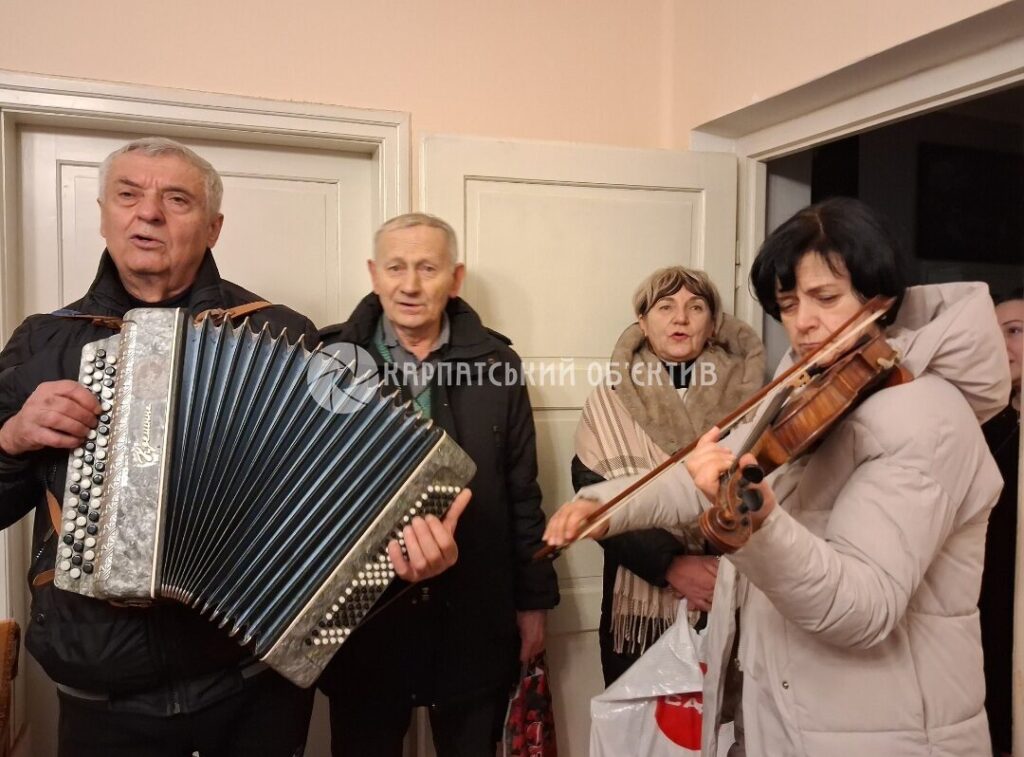 Потім лунає одна із колядок (у кожній оселі інша): «Нова радість стала», «Небо і земля нині торжествують», «Во Віфлеємі нині новина», «Добрий вечір тобі, пане господарю», супроводжуючи спів мелодійним калатанням різдвяних дзвоників та баяном, яким майстерно володіє Іван Штелиха. Пан Петро вінчує господарям прожити прийдешній рік у мирі, благодаті, доброму здоров’ї, нехай Господь з високого неба допоможе у справах, здійсненні мрій і бажань. На завершення гурт співає «Многая літ». Оселя наповнюється святковою атмосферою. Від радості люди похилого віку та одинокі плакали і дякували Богу, що дочекалися Різдва.