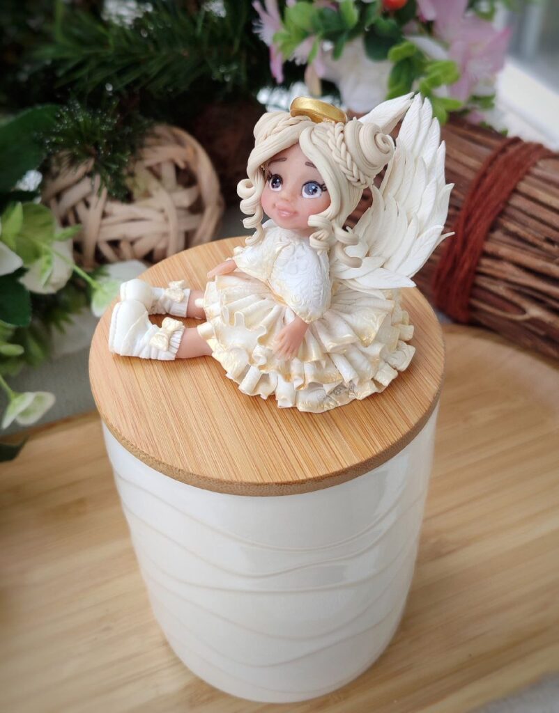 «Свічкарство я не закинула, просто більше часу в мене займає робота з сувенірами. Мені якось друзі до свята подарували чашку з авторським декором і я вирішила, що мушу навчитись творити такі дива і сама. Зазвичай декорую готовий магазинний посуд. Це можуть бути не лише чашки, але й тарілки, ложки, виделки, ємності для спецій, солянички, підноси, будь-що. Також виготовляю статуетки, ялинкові прикраси, брелоки, маленькі дитячі іграшки. Працювала і над біжутерією, але виключно для власних потреб. У роботі використовую і спеціальні форми, і ліплю деталі вручну. Навчитись нескладно, але навики все ж потрібні. Та опанувати їх під силу кожному», – стверджує умілиця.