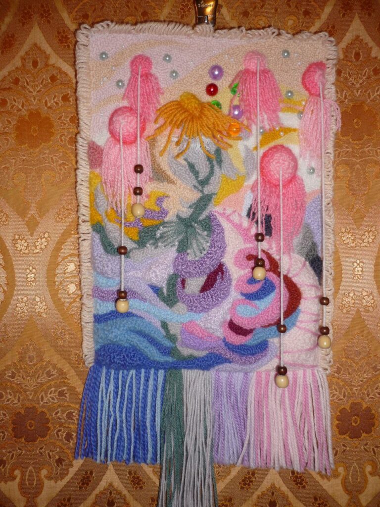 «Коли в матері декілька дітей, вона любить усіх однаково, нікого не виділяє. Так і у творчості. Просто є вироби, над якими працюється важче і довше, а є такі, які створюються швидко і просто. Тут важливо, аби людина раділа від того, чим займається. Я обожнюю килимарство. Шкодую тільки, що так пізно цьому всьому навчилася. Але, як кажуть, краще пізніше, ніж ніколи. Тому добре, що спробувала, чудово, що в мене виходить. Прекрасно, що була людина, яка мене зацікавила, навчила, і зараз підтримує, мотивує, підказує, якщо в чомусь сумніваюся… До речі, оздоблює нам із Люсею гобелени брат. Рамки, підвіски – його робота. Він теж неймовірно талановитий. Хоч усе життя займав керівні посади, та залишився простим, людяним і добрим. Працювати з деревом навчився ще малим у батька. Зараз ці знання стали у нагоді нам усім», – зауважує вона.
