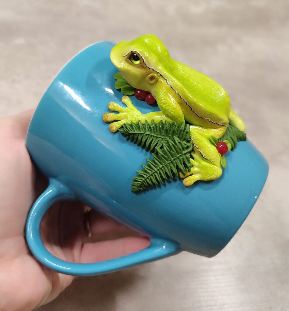 Жабки, казкові замки, пряничні будиночки, грибочки, коники, котики, собачки, герої мультфільмів… Чого тільки немає на чашках закарпатської майстрині. Кожен її виріб – справжній витвір мистецтва. Незвичні декорації умілиця створює вже шостий рік. Каже, що зовсім нескладно, навпаки – неймовірно цікаво.