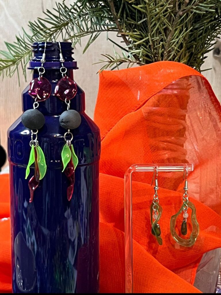 «Одного разу я просто сиділа за кухонним столом і дивилася на купу пляшок, які накопичилися після свят. І раптом подумала: а що, як з цього зробити щось красиве? – згадує майстриня. – Так народилася перша задумка: перетворити непотрібний матеріал на щось унікальне, що могло б прикрасити не лише моє життя, але й світ інших людей. Перший виріб був досить простим, але важливим для старту – маленька підвіска з обрізаних шматочків пластикової пляшки, пофарбована акриловими фарбами та задекорована дрібними намистинами. Вона вийшла дуже крихкою, але я зрозуміла, що можу з цього щось зробити. Ця робота дала упевненість: навіть із такого, здавалося б, непотрібного матеріалу можна створювати справжні прикраси, і водночас робити корисну справу для довкілля».