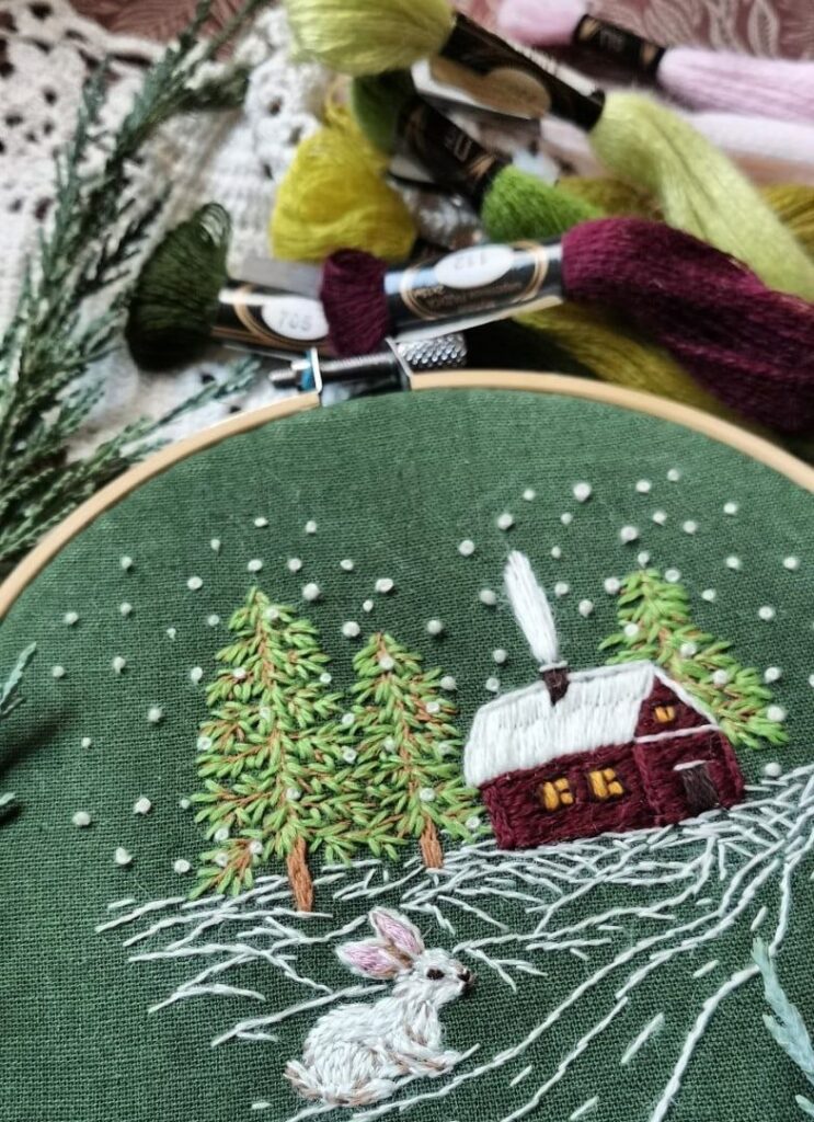 «Я все, що сподобалося, фотографую. Потім просто переглядаю знімки, щось компоную у голові. Влітку багато інших турбот, сад, город, тому більш вільними для творчості в мене є кінець осені, зима та початок весни. Люблю, до слова, і новорічну тематику, наприклад, різні цікавинки з ялинками, гілками хвої та шишками, засніженими будиночками, контурами гір, невеличкими пейзажами», – розповідає майстриня.