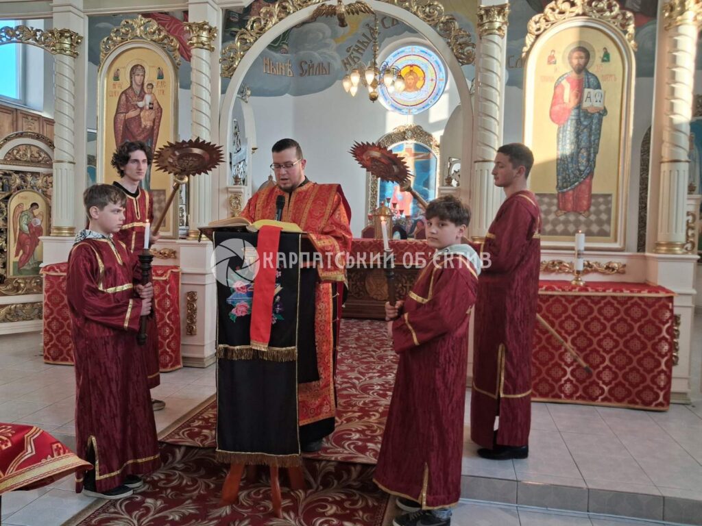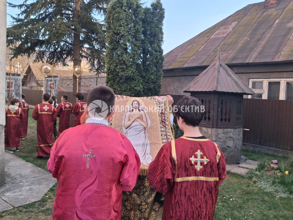 З Плащаницею, винесеною з вівтаря, відбувся обхід церкви під звуки деркача – у четвер ввечері, після Страстей, церковні дзвони замовкають до Воскресіння Господнього.