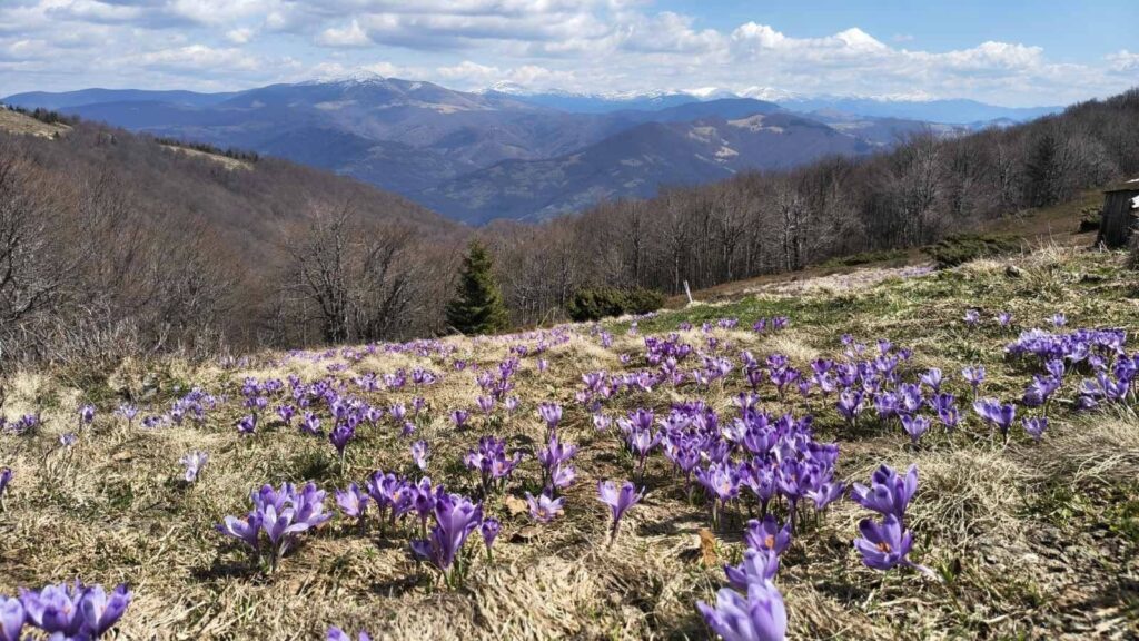 У цей період полонина Красна та гора Терентин стають одними з тих місць, куди варто вирушити хоча б раз навесні. Саме зараз тут можна побачити масове цвітіння шафрана Гейфеля – явище, яке триває недовго і щороку залежить від погоди.