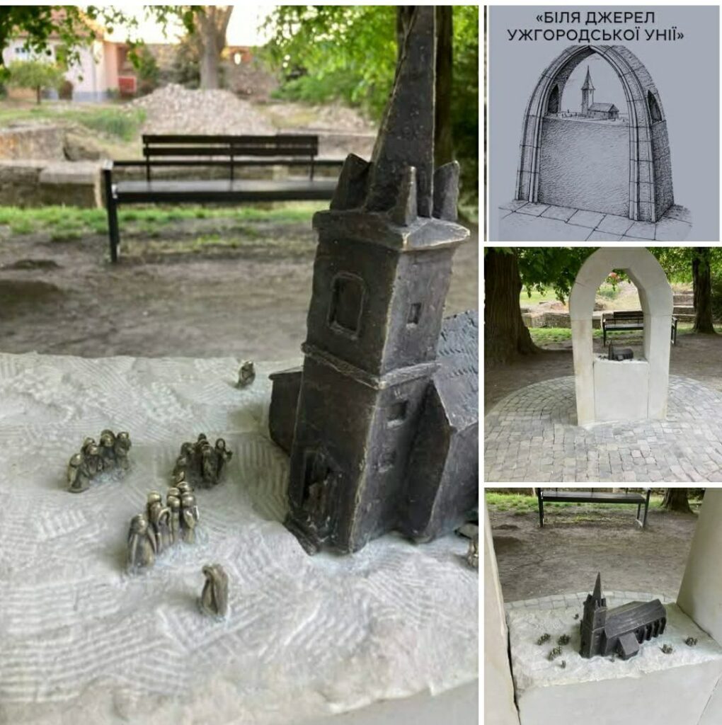 Поблизу руїн давнього храму встановлено міні-скульптуру “Ужгородська унія-1646”.